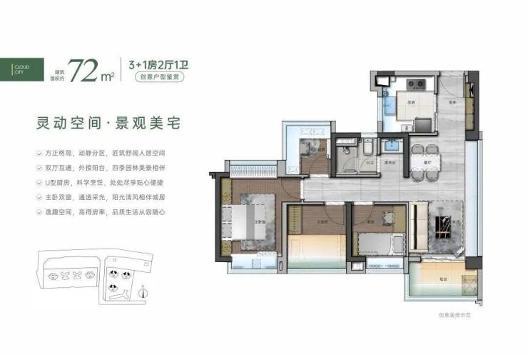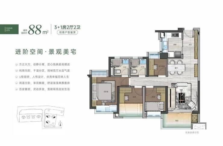 在售户型有72-88-105都是四房户型