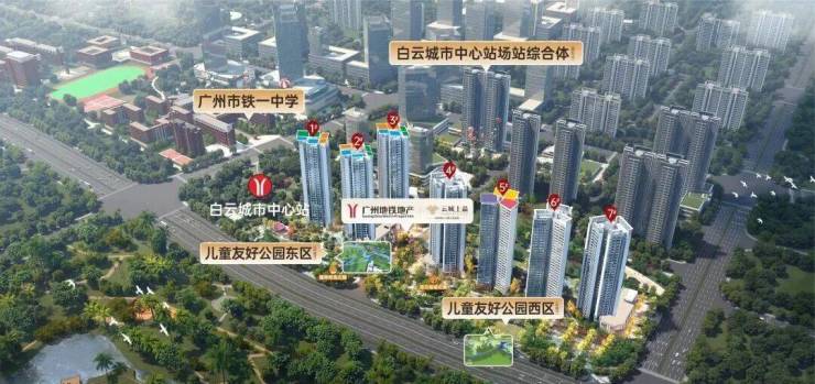 项目位于双高速地铁-白云城市中心站上盖,3站广州东站,4站珠江新城。通达广州各大cbd商圈,半小时直达市中心,一小时内畅行大湾区