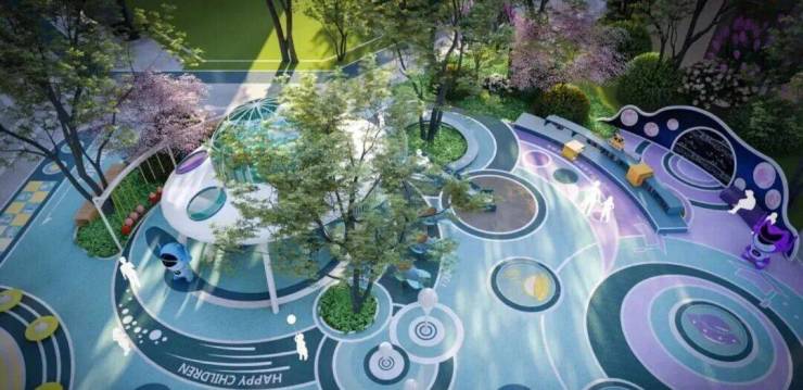 礼序归家动线迭加全龄活力乐园,社区建有天际泳池、有氧跑道、羽毛球场,儿童历险乐园、科普植物园、雨水花园等多元活动交流场所。