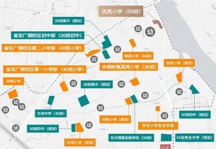 项目约600米芳村小学东沙学校,约1公里规划有两所九年一贯制学校,并且广州市第四中学、广州市西关外国语学校、广东实验中学、广东广雅中学初中部、广州市荔湾区金道中学(真光中学托管)五大学府林立。并项目配建幼儿园,尽享便利。