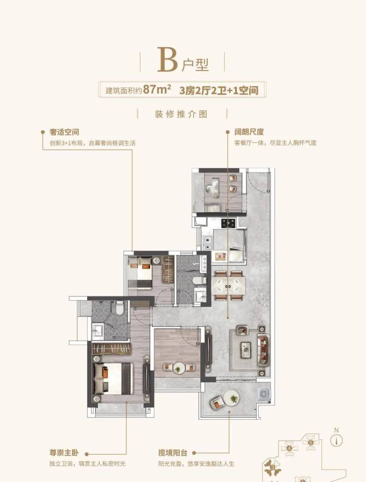 87㎡ | 3房·2厅·2卫+1空间