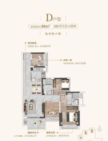 89㎡ | 3房·2厅·2卫+1空间