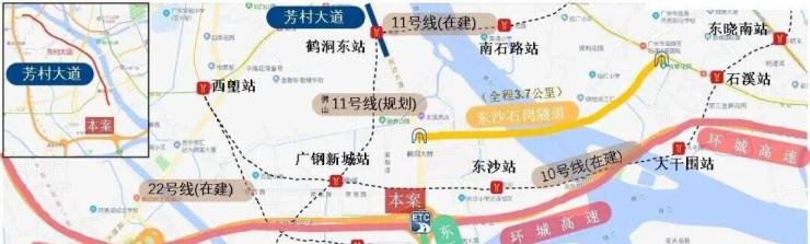 11号线鹤洞东站(在建):贯穿荔湾、海珠、天河、越秀中心四区,直达琶洲和广州东站;