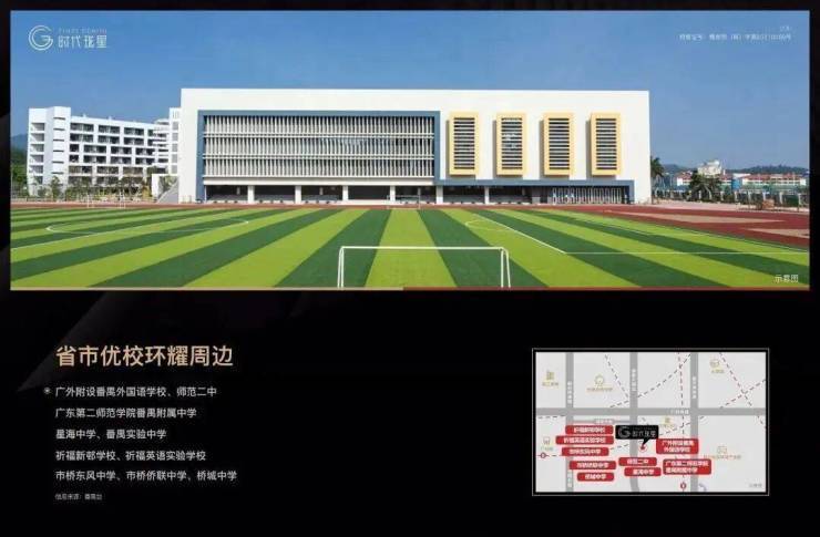 教育方面,项目中学的教育资源有番禺区星海中学、市桥东风中学、市桥侨联中学、桥城中学、番禺区实验中学。从项目地出来向东600米左右有一所九年一贯制私立学校——广外附设番禺外国语学校。