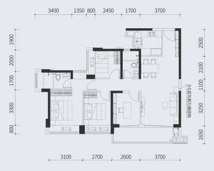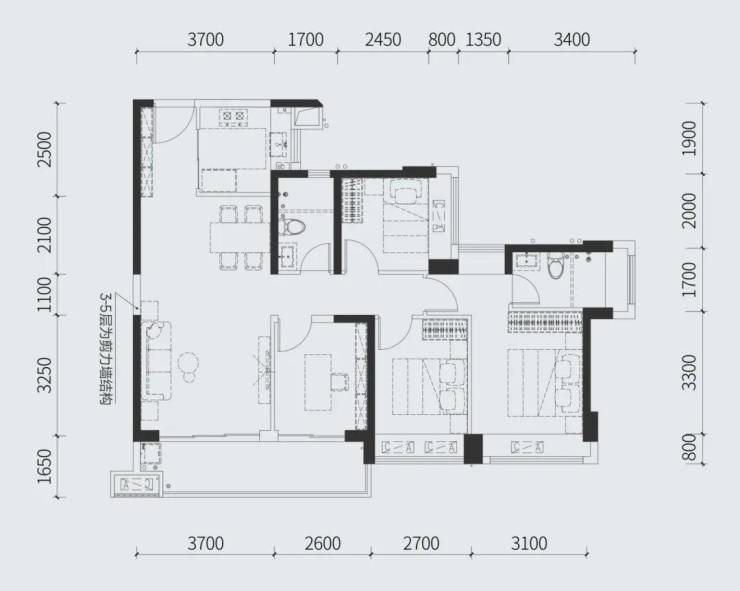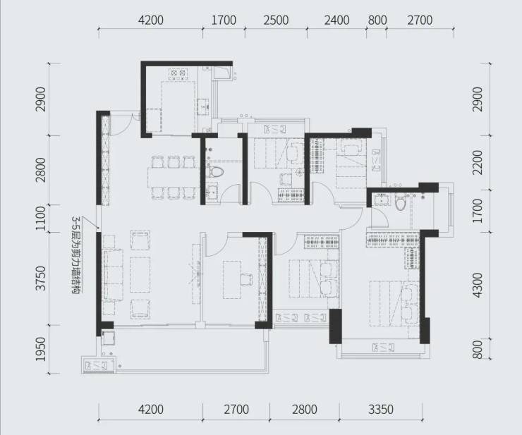 建面约114㎡四房两厅两卫