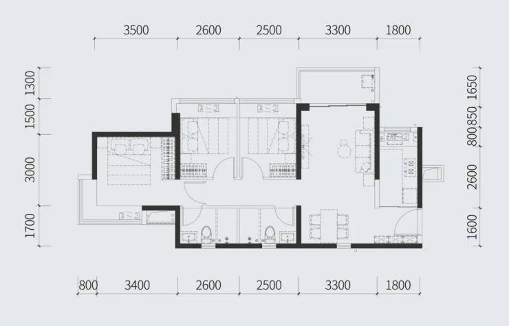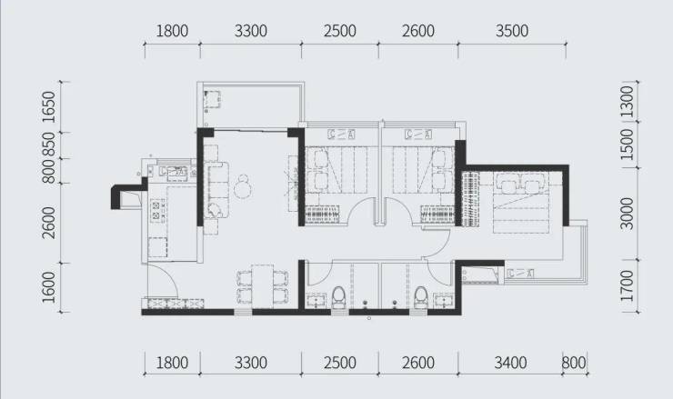 建面约97㎡三房两厅两卫