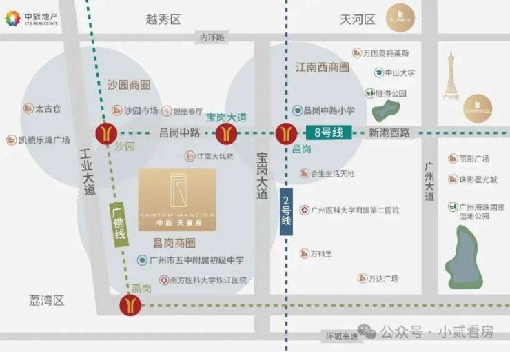 距地铁8号线宝岗大道,5min上内环,交通便利,全城通达性高;步行500米即达省级名校昌岗中路小学,临近乐峰广场、太古仓、南方医科大学珠江医院等成熟生活配套。