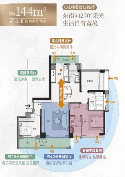 此外,ABC栋还有少量128㎡、144㎡四房尾货在售,128㎡四房适合多孩家庭,144㎡大四房空间充裕,部分高层可享江景视野