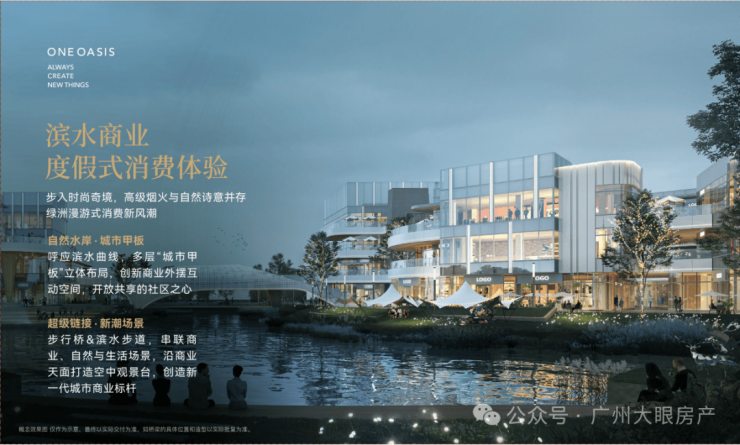 自带约4万方滨水商业:以新加坡vivo city为设计蓝本,采用开放式布局,增加了外摆和互动空间,类似珠江新城天德广场的猎人坊