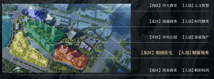 东区为住宅组团,有滨水园林,近地铁和商业,有精英要的奢享及高效;