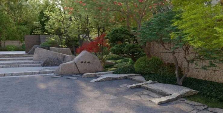 借势白云山,运用「真-行-草」手法将山体灵动秀气的景致引入,融合“石、水、光、林、云”5大自然要素,营造静谧纯粹,高贵又沉稳的归隐生活空间。
