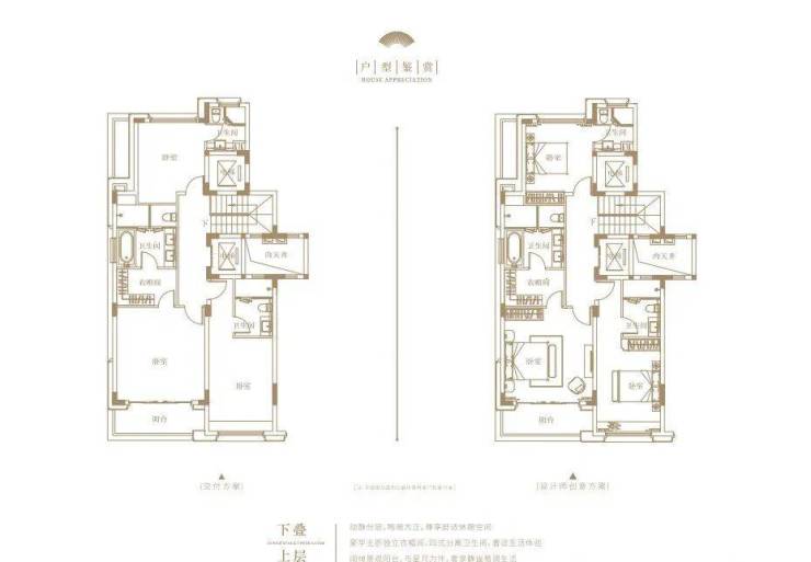 上叠,建面约240㎡,独立入户,首层是独立会客厅和长辈房,二层是三间卧室。