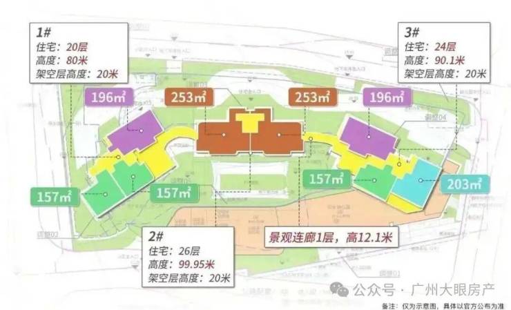 中间2栋为楼王单位,26层高,两梯两户,户型全部为253平大平层,层高达到3.3米。