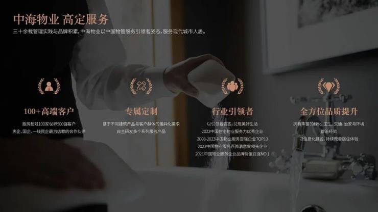 项目引进中海物业,三十余载的物业管理时间与品牌积累,作为中国物管服务的引领者,高质量专属定制服务,让每一位业主感受来自云庐最贴心的归家服务。