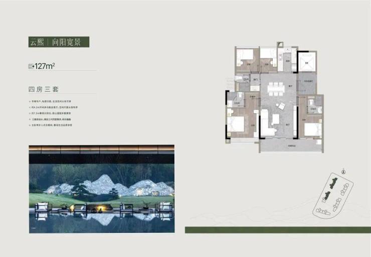 全南向板式布局,采光通风巨佳,专梯专户山居环幕MAX平层,视野开阔,揽一线云山美景,低密居住环境非常舒适。