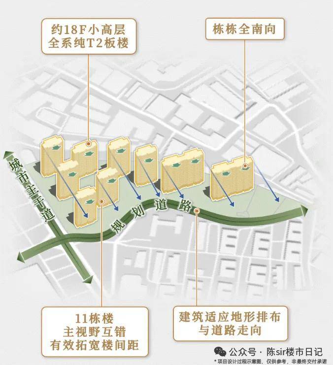 全盘采用点式布局,9栋楼主视野互错,有效拓宽楼间距。更绝的是全系纯T2板楼!约18F小高层!栋栋全南向!