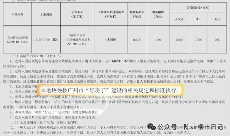保利白云新城项目,恰恰是广州第一宗在土地出让公告中,就明确写入“好房子”建设标准的地块。