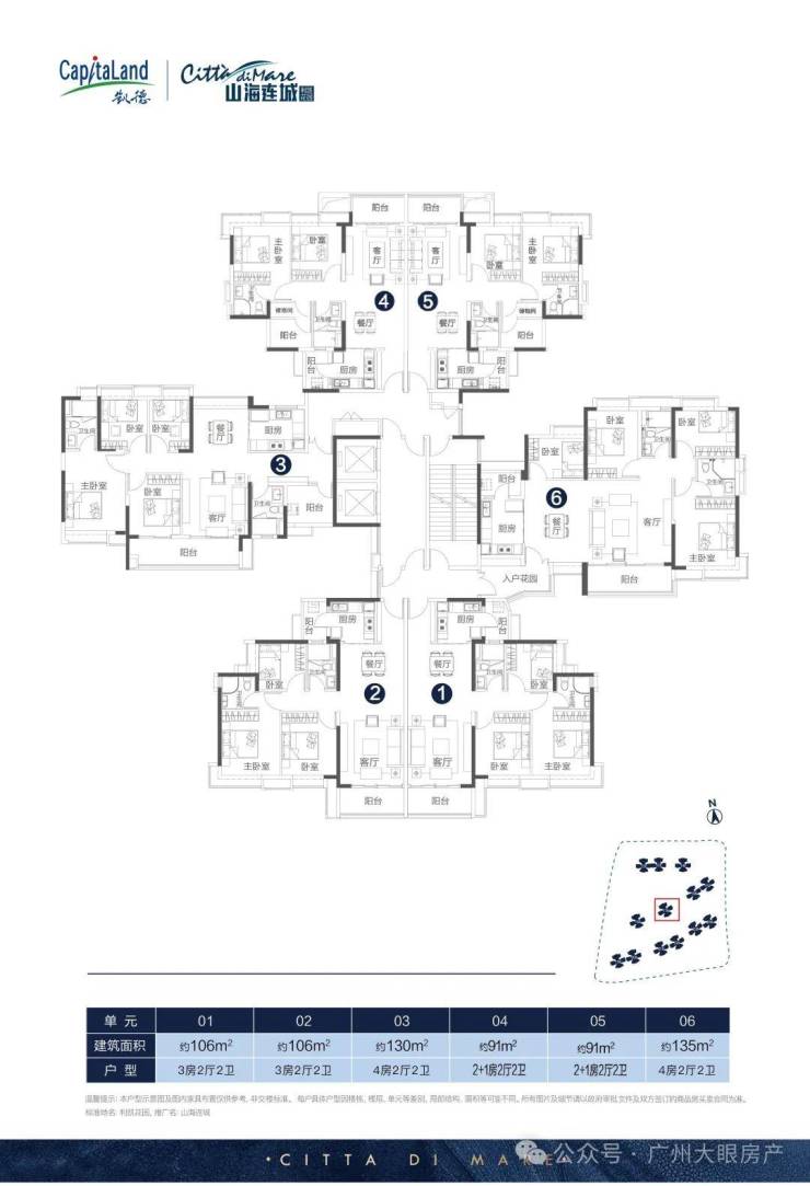 项目一共有5个面积段,分别是85平三房两厅一卫,91/106平三房两厅两卫,130平A户型五房两厅两卫,130平B和135平户型四房两厅两卫。