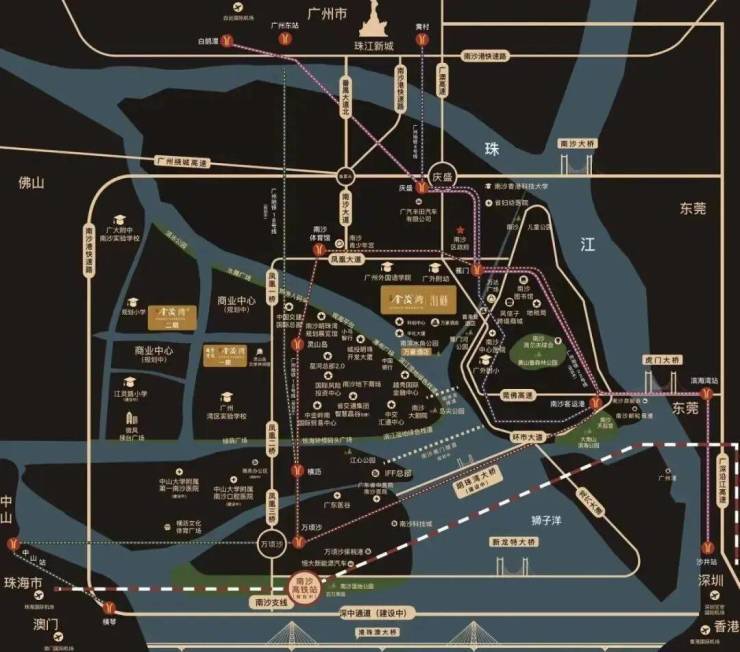 项目坐落于凤凰大道和焦西路交汇处,隶属于南沙明珠湾区起步区——岛尖核心板块,地理位置得天独厚,生态与配套双重优越: