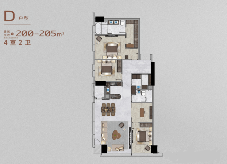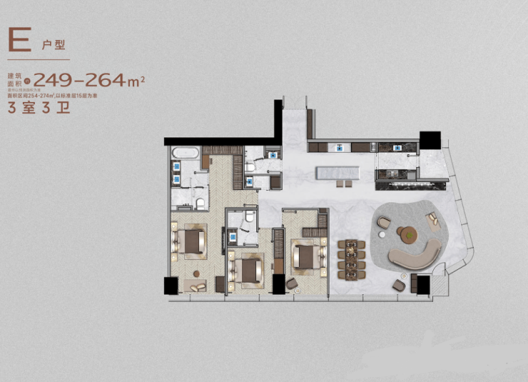 最后来看看产品部分,项目主推建面约150-350㎡大平层,高达约4.1米的奢华层高,全盘仅120席,极度稀缺。