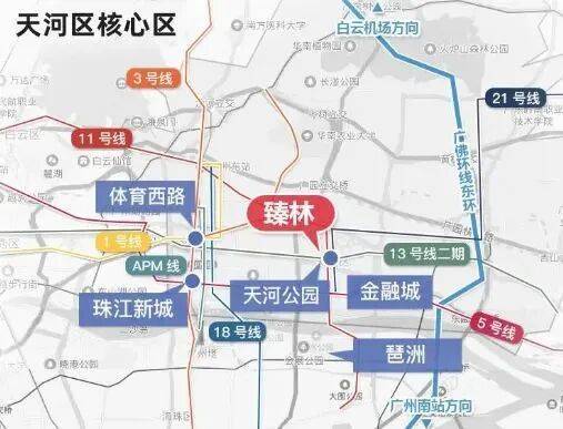 交通方面,临近亚洲最大地铁站 —— 天河公园站,21 号线、13 号线、11 号线三地铁交汇。21 号线串联多个产业组团,13 号线贯通东西,11 号线是主城区环线。教育上,周边有华港幼儿园等公立幼儿园,小学对口华融小学,中学对口广州市第一一三中学(金融城校区)。医疗上,小区北面 800 米是东晖社区卫生服务站,1200 米处是南方医科大学附属第三医院。