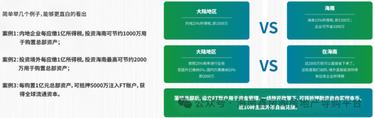 进驻契机已至,在企业所得税减免、高端人才个税减免基础上,FT账户落地细则全面执行、QFLP余额管理制试点开启,可实现总部企业零成本进驻海南,享受时代红利,并打造面向全球拓展的企业资金池。