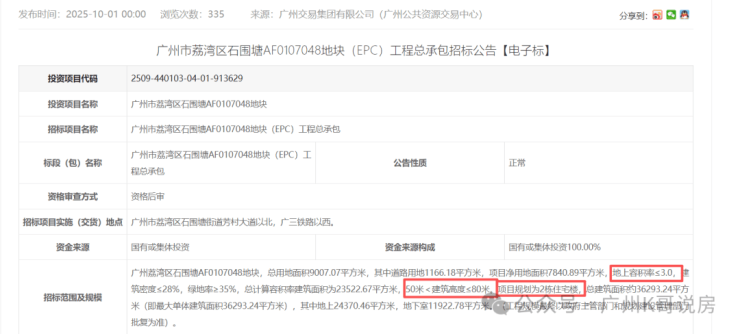 石围塘地块宗地面积9007平,建筑面积23552平,容积率3。