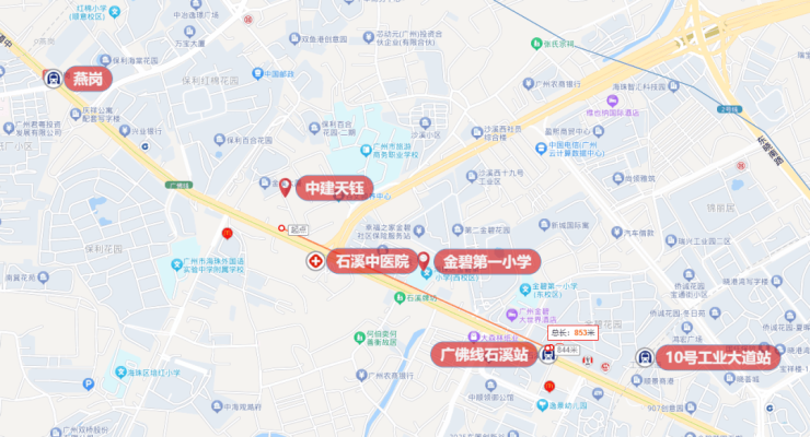 譬如地铁方面,中建天钰位于石溪站(广佛线&10号线)和燕岗站(广佛线&10号线)中间,可以说是双地铁站 x 三地铁线项目。