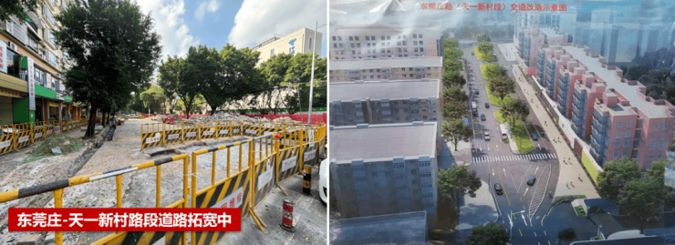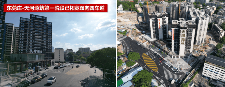 ●主动退地改善道路面貌:东莞庄路(天河源筑)道路拓宽施工,未来将拓宽为双向四车道,前广场焕新升级中