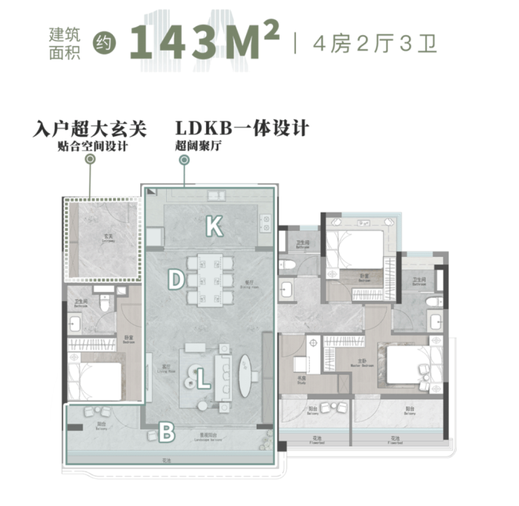 03单位|建面约143㎡︱4空间二厅三卫