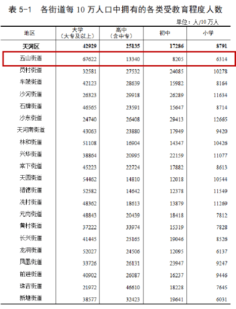 -生源优质:4大高校在旁,与高校教授、院士、研究院科创人才为邻;据第七次人口普查数据显示,五山街道更是广州高知家庭的聚集地,辖区内大学及以上学历人口占比高达67.6%,生源多源于高知家庭,生源优质。