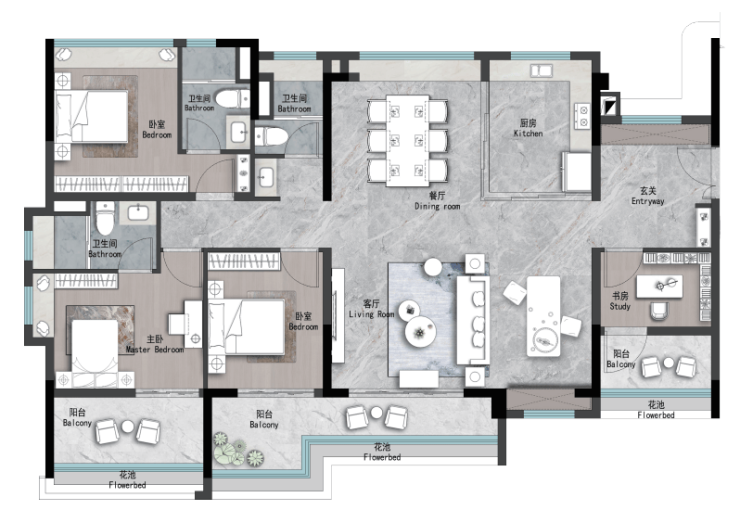 #3#4 建面约140㎡︱4空间二厅三卫
