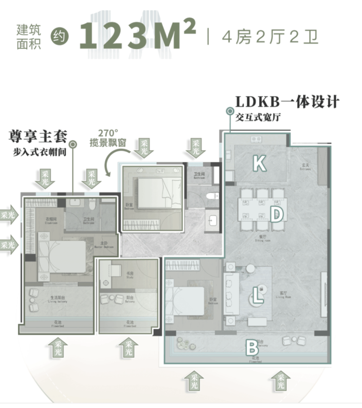 02单位|建面约123㎡︱4空间二厅二卫