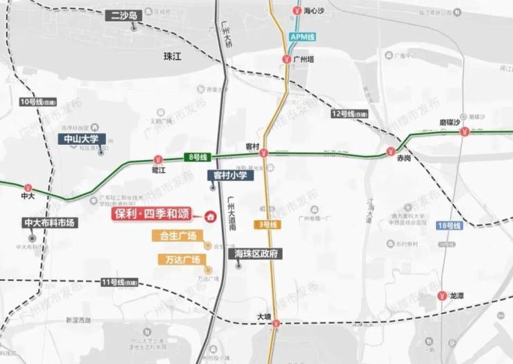 项目交通配套:项目距离最近的地铁站是8号线客村站和鹭江站步行距离都是1.5公里左右,周边还有3/10/11号线,4条地铁交汇,1站可达广州塔,2站到珠江新城,3站至琶洲西区。自驾出门即广州大道南,到珠江新城只需5公里到琶洲只需11公里。