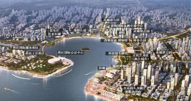 沿滨海岸线建设国际会议中心、金融博物馆、改革开放博物馆、国深博物馆、海洋博物馆、渔人码头、超五星级酒店等市政配套(以最终规划及建设为准)