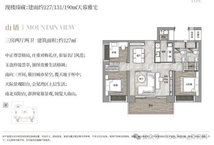建面约127平,3房2厅2卫