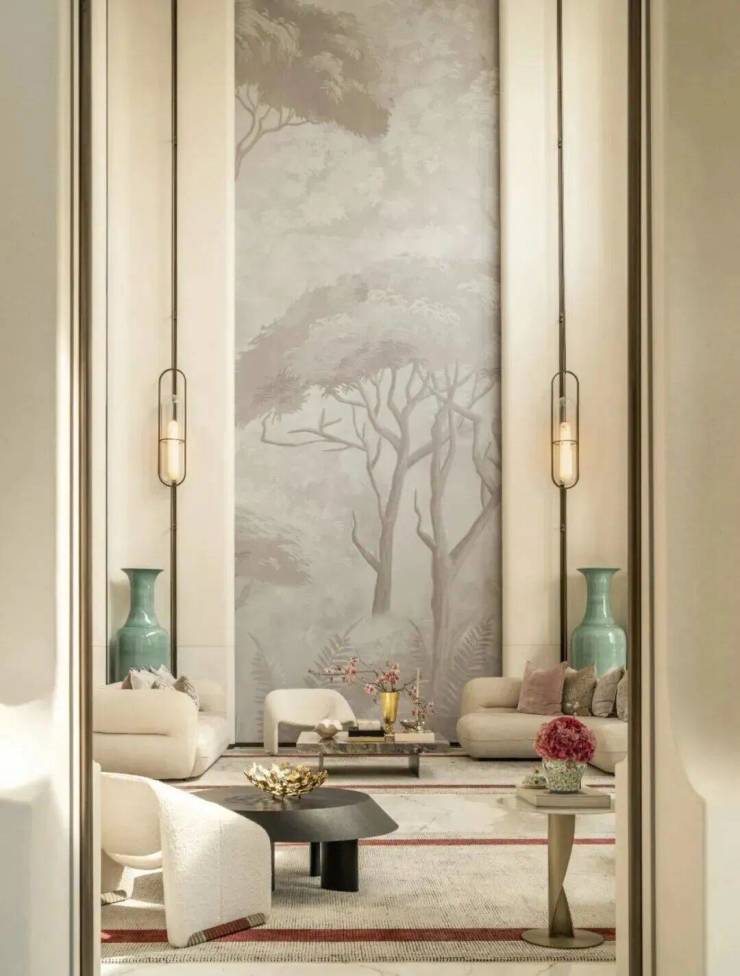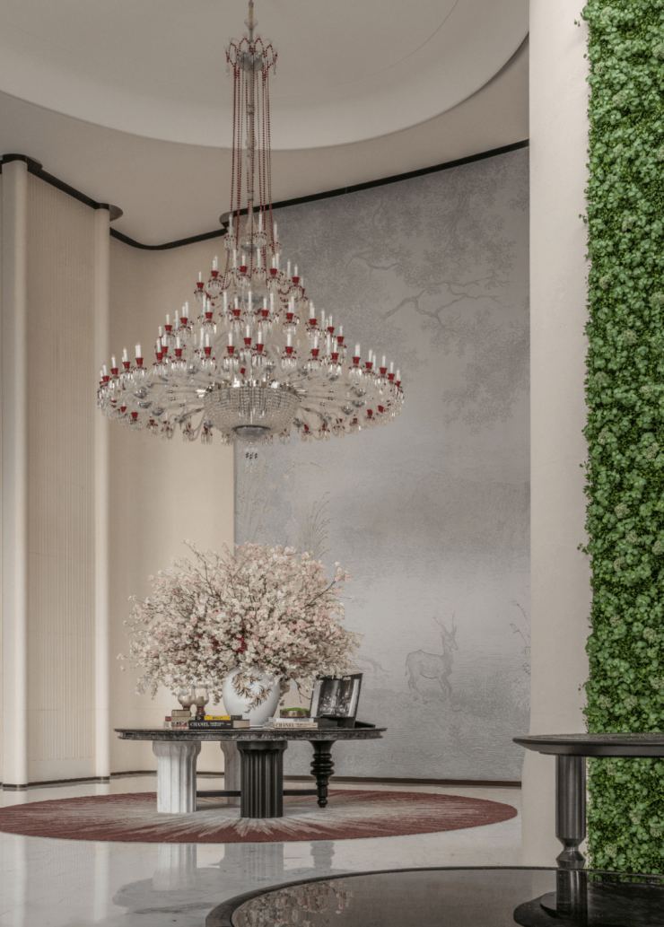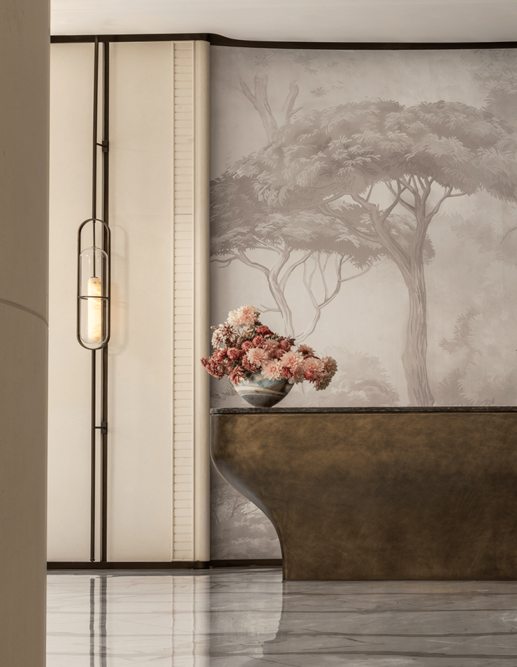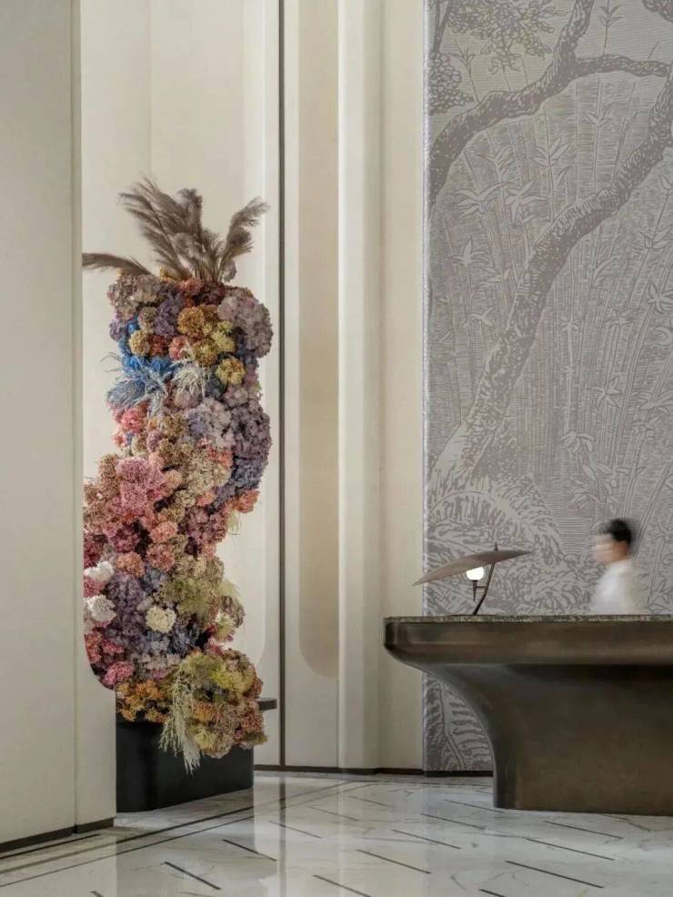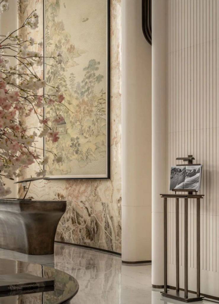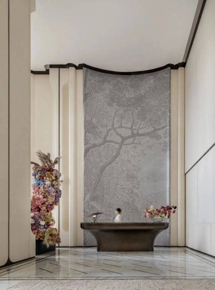 项目所在地踞珠江第一排,一眼珠江千年波澜,设计融入“花城”四季开花的概念,以极简的留白打底,描绘乾净高级的典雅殿堂。