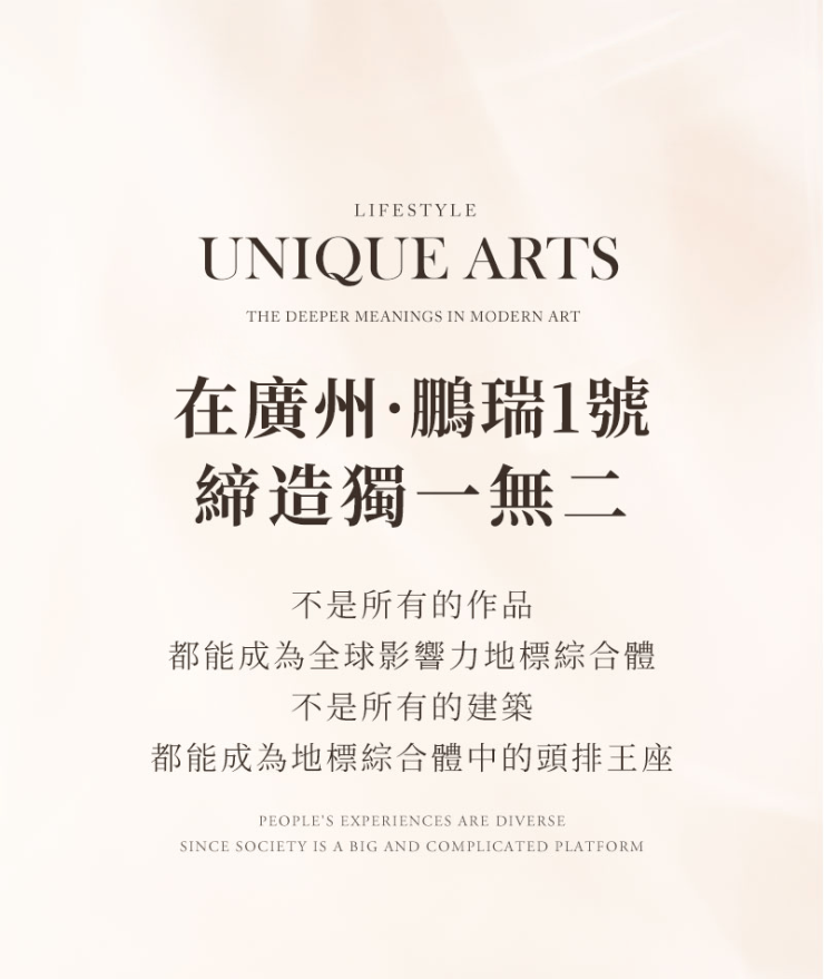 广州·鹏瑞1号屹立千年珠江畔,落笔广州国际金融城,鹏瑞集团以多业态聚合,超级地标综合体為项目立意,也為广州献礼。