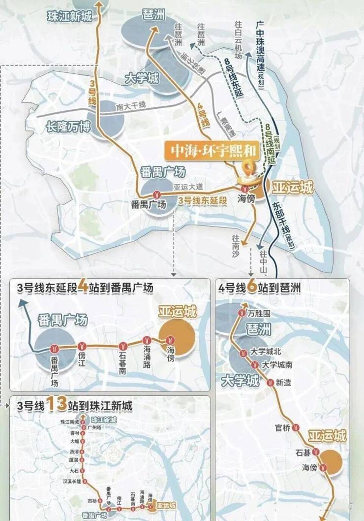 3号线始发站(早高峰有座)、4号线交汇,3站大学城、5站万博、8站金融城。连接广州塔、珠江新城、体育西城市新中轴 。