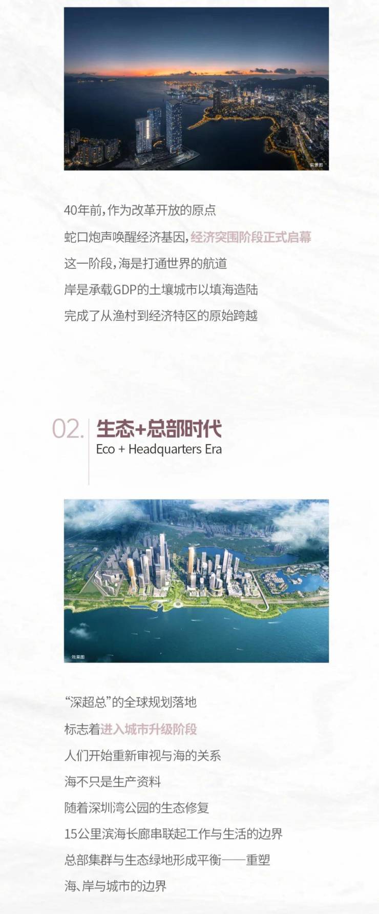 深圳歌剧院开工建设、蛇口渔港焕新升级、蛇口影剧院改造重生,都是这一文明升维进程的生动见证,深圳湾在时代的演变下升级为“城、海、人”三者共荣共生的极致表达,产业的高峰、生态的绿意、文明的灯火,标志着一种现代滨海都市发展的崭新范式。