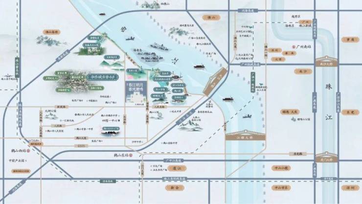 5大軌道交通、7條高速穿行,交通網絡密佈,1站佛山,5站廣州,迅達東莞、中山、深圳、珠海,對接廣佛都市圈及珠江東岸深莞城市圈,漫享灣區半小時生活圈。