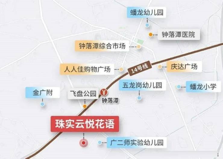 1.项目位于地铁14号线钟落潭站旁,5站到嘉禾望岗,换乘2、3号线可直通白云新城和畅达广州全城