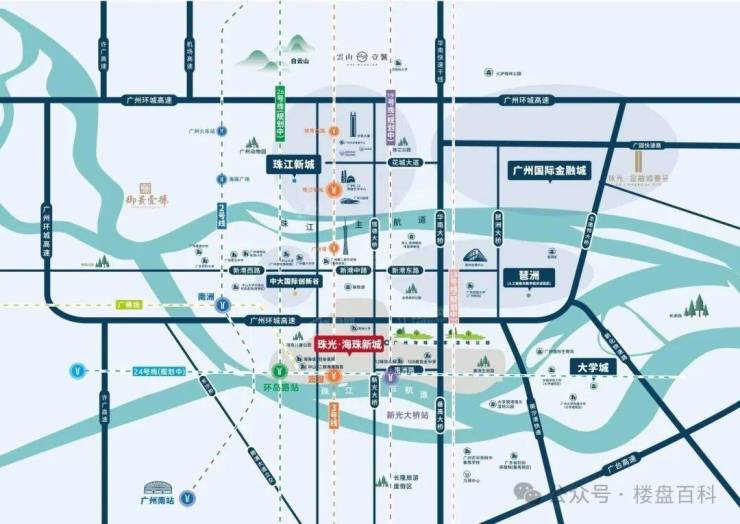 珠光海珠新城位于广州市海珠区南洲街道南洲路与大沙新村东街交叉口东200米处,广州地铁3号线与广佛线交汇的沥滘站附近;属珠江后航道北岸地区,占据广州中轴南端最后1公里,与珠江新城CBD、广州塔共同承载着广州12公里城市中心界面的重磅规划,广州中轴之上最后的塔尖置业珍稀之地。