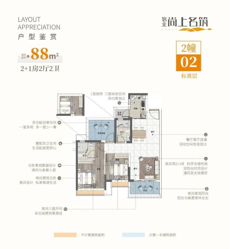 ☀实用88㎡2+1房2厅2卫【南向景观】