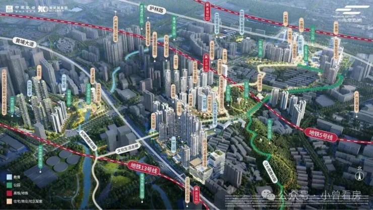 双黄金地铁线:5号线文冲站及13号线双岗站,3站金融城,6站琶洲,9站不换乘直达珠江新城板块
