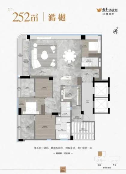 252㎡的 4+1 房属于大平层旗舰户型,占据头排湖景位置,三面环湖无遮挡。约 105㎡的多功能社交端厅能容纳多人聚会,3.2 米的层高搭配全景落地窗,湖景视野开阔,还预留了藏品展示区,总价根据楼层不同有明显差异,适合有改善需求的家庭。