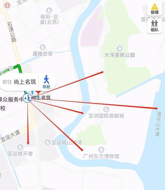 周边砺江,休闲绿道环绕四周,东望大小浮莲山、远眺莲花山、狮子洋,紧邻国家4A级旅游区莲花山风景区、莲花山高尔夫球会、规划中打造岸线景观带和大型滨海生态公园的海鸥岛、亚运文化村等为广州不可多得的首席国际生态宜居地。