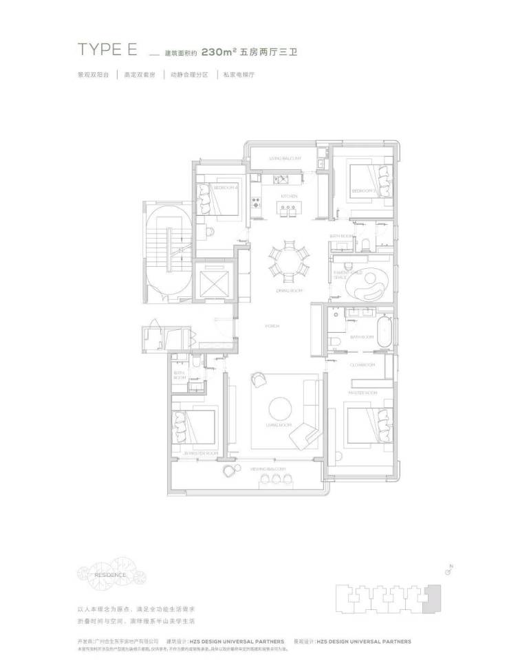 项目共规划42栋楼、1270户,主打2梯2户与3梯2户配置,提供145-315㎡三至五房大平层产品,所有户型均配备私家电梯厅,保障出入的私密与尊贵。
