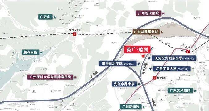 项目东面直线距离不到1公里就是白云山,2公里范围内更有六公园(广州动物园、云台花园、麓湖公园、黄花岗公园、东风公园、燕岭公园)环绕,形成天然氧吧。