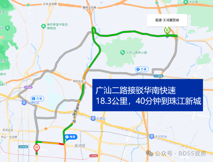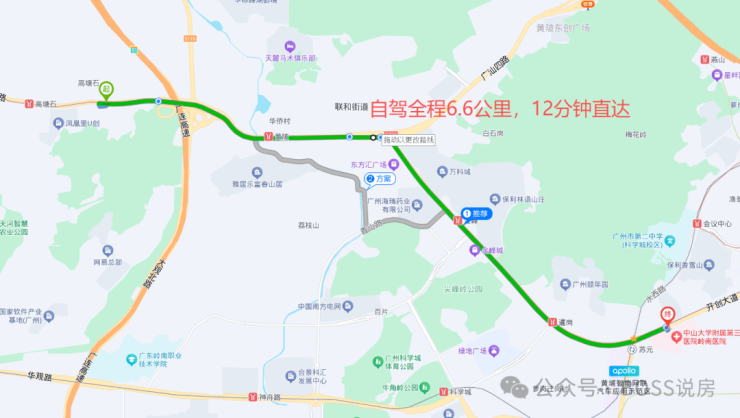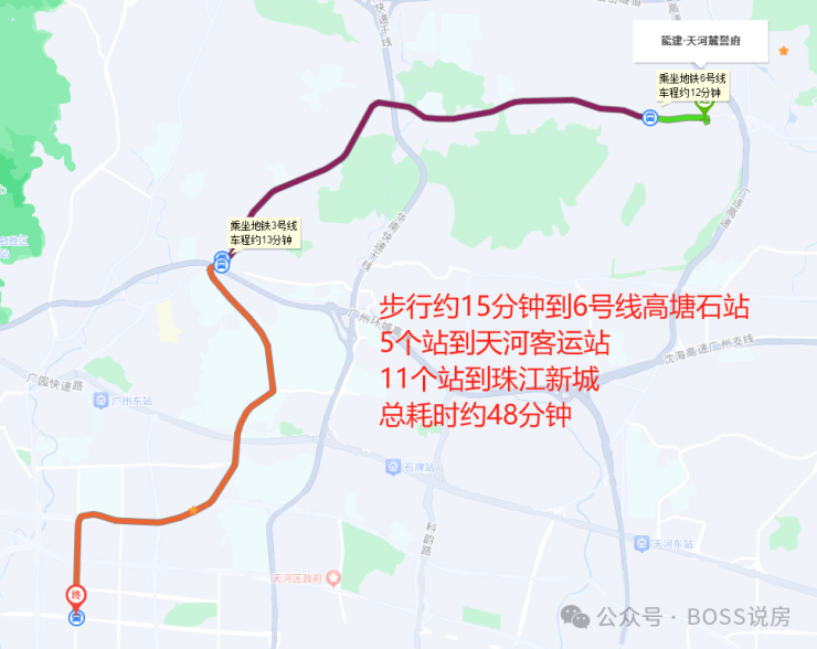 项目到地铁6号线高塘石站直线距离约700米(来源:百度地图测距),1站换乘,3首劲歌金曲的时间即可前往珠江新城CBD。
